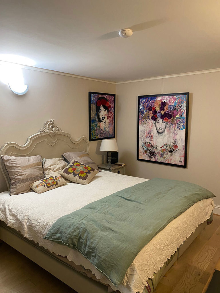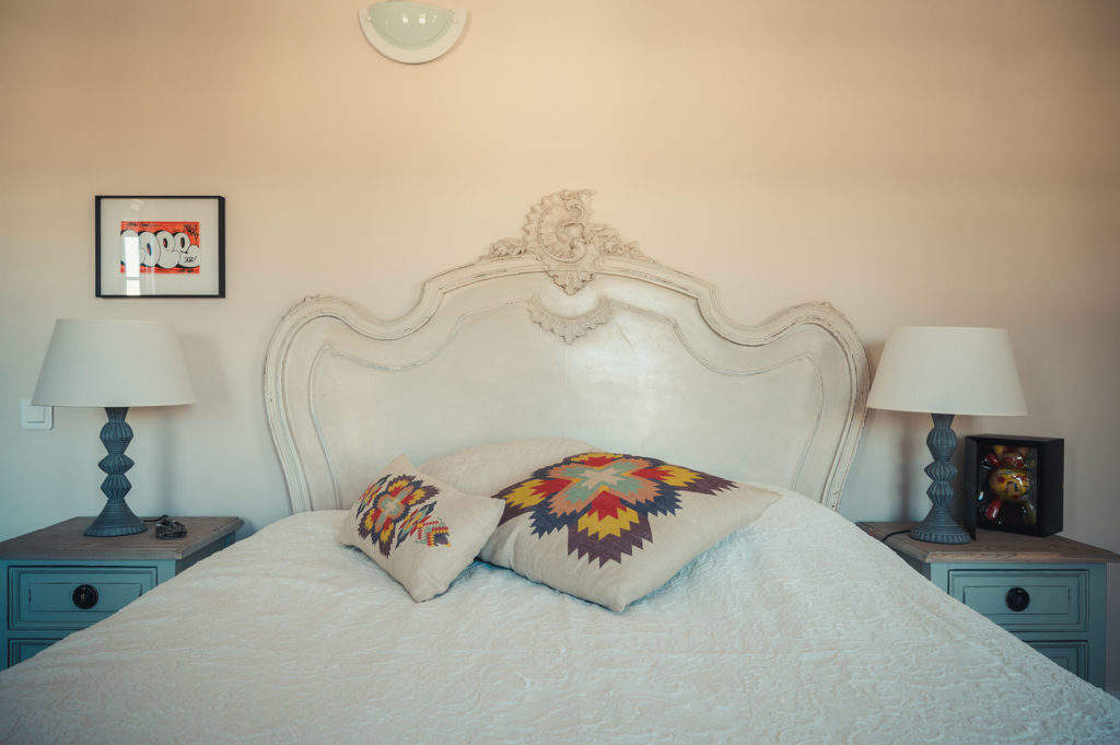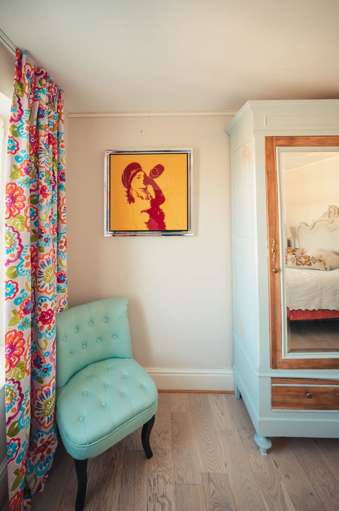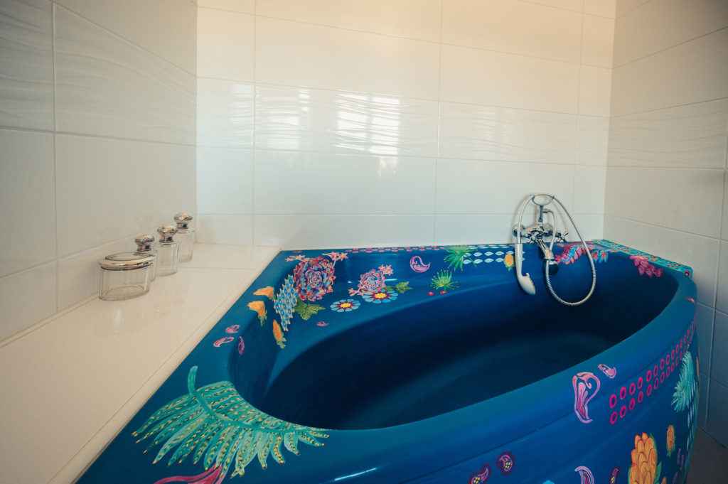 Pauline est l’héroïne du « Hussard sur le toit » de Giono ; cet écrivain qui raconte notre Provence à merveille. La chambre est fleurie comme la Provence, mais des fleurs si poétiques… des roses en Street Art, des peintures florales en décoration de salle de bain… Venez jouir du vrai sommeil et profiter d’une chambre avec salle de bain et baignoire ! Et quelle baignoire… façon Fragonard !