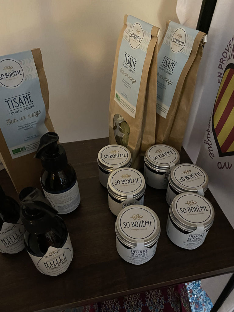 A la petite boutique, vous trouverez pêle-mêle des senteurs de Provence, en bougies, huiles essentielles, soins pour le corps, savons parfumés de nos artisans locaux. Des produits de dégustation que j’ai goutés avant vous et choisis pour vous : Limoncello, chouchous de Provence, huile d’olive, confitures…. Tout ce qui est un régal pour les papilles et vous permettra de voyager pour revenir à la Bastide dès que vous ouvrirez le pot ! Sans oublier nos célèbres confitures maison : les « Calouanne » ! Le succes de la Bastide. Il y a aussi des petites cigales ravissantes, des pochons de lavande, des robes de plage bohème, des shorts d’été, des chemises à pompon craquantes etc. Un joli moment à passer en perspective !